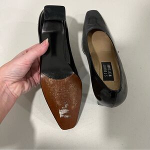 Stuart Weitzman heels, patent leather pumps, square toe shoes, block heel pumps, black leather shoes, designer heels, formal shoes, business casual heels, vintage Stuart Weitzman, luxury shoes, date night heels, timeless black heels, elegant footwear, minimalist heels, women’s dress shoes, evening shoes, classic pumps
