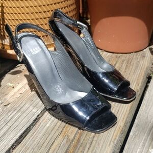 Stuart Weitzman Black Patent Sling-back Heels 7