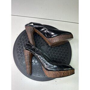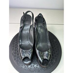 Stuart Weitzman Black Patent Slingback Peep Toe Sandals Sz 8 M
