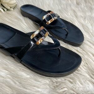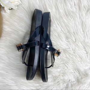 Stuart Weitzman Black Patent tortoise shell ring Thong Sandals Sz 7.5