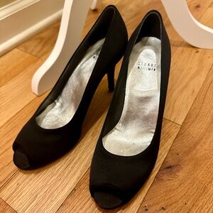 Stuart Weitzman Black Peep Toe Heel Pump Satin Texture Leather Sole Size 8.5