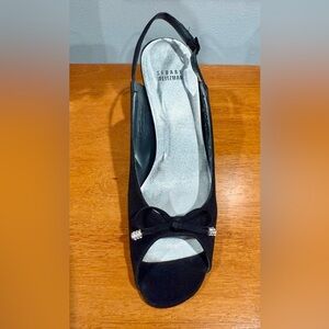 Stuart Weitzman Black Peep Toe Slingback Heels Bow Rhinestone Detail Size 9M