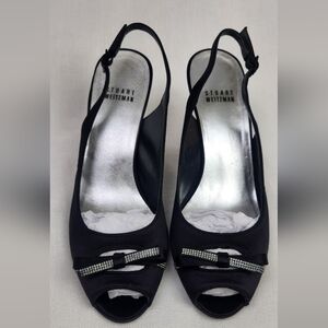 Stuart Weitzman Black Peep Toe Sparkle Bow Heel Pumps