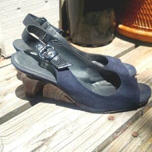 Stuart Weitzman Canvas Black Peep Toe Wedge Tortoise Sandal. Made in Spain. Absolutely gorgeous, head-turning shoes!