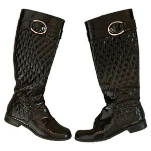 Stuart Weitzman Black Quilted Patent Leather Knee Boots