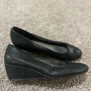 Stuart Weitzman Black Reptile Print Wedges Women’s , size 9.5