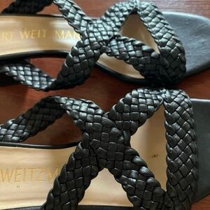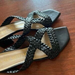 Stuart Weitzman Black Rosie woven braided slide sandal leather