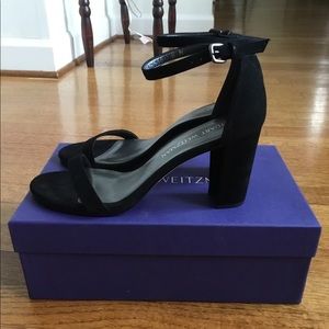 Elegant black sandals with ankle strap. Perfect for any occasion. I no longer have the box. Wore a few times excellent condition.