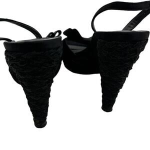 Stuart Weitzman Black Satin Bow Espadrille Slingback Pumps – Size 6