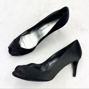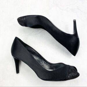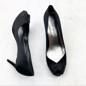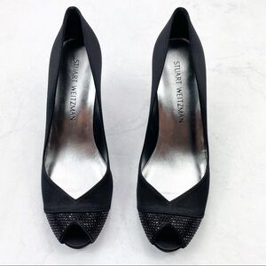 [Stuart Weitzman] Black Satin Gem Peep Toe Pump