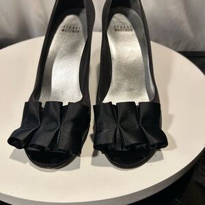 Stuart Weitzman Black Satin Open Toe Gigiritz Heels