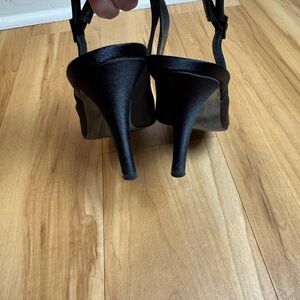 Stuart Weitzman Black Satin Peep Toe Slingback Heels - size 9