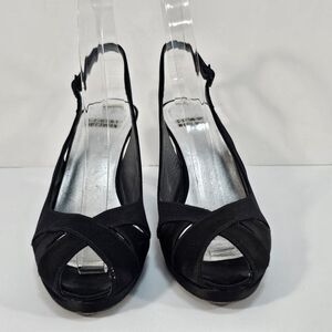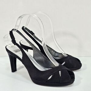 Stuart Weitzman Black Satin Peep toe Slingback Platform Sandals Shoes Size 6.5 M