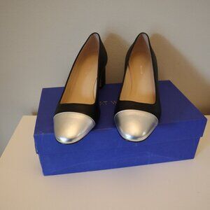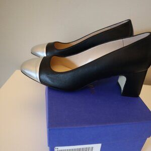Stuart Weitzman Black Silver Leather Milla Pump New in Box Size 8