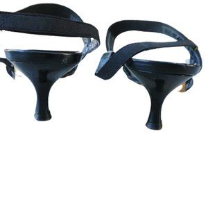 Stuart Weitzman Black Square Toe Heels Sandals Leather Sole Spain. 2 1/2" Heel. Printed Size 7M.