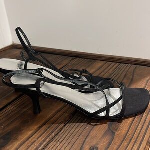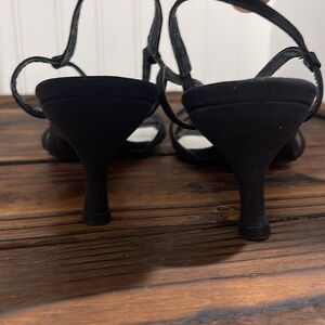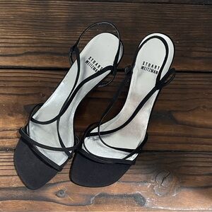 Stuart Weitzman Strappy Black kitten heel sandals so chic and sexy.