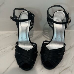 Stuart Weitzman Black Strappy Heels with Rhinestone Buckle