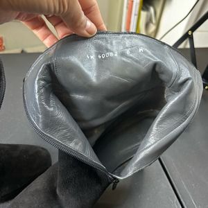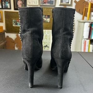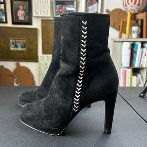 Stuart Weitzman Black Suede Embroidered Chevron Heels Ankle Boots Womens 8 M
