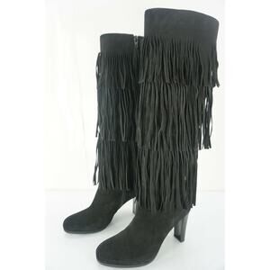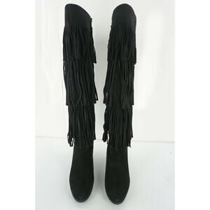 Stuart Weitzman Black Suede Fringie Knee High Boots SZ 7 N Narrow