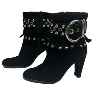 Stuart Weitzman Black Suede Studded Fringe Heeled Ankle Boots size 5