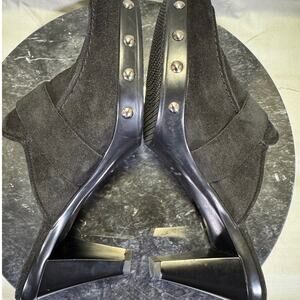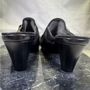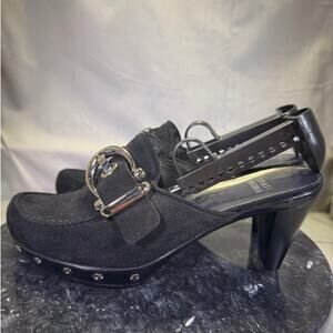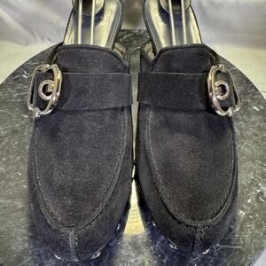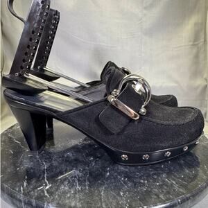 Stuart Weitzman Black Suede Heels Studded Mules W/ Silver Buckle 6.5M US