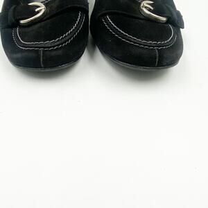 Stuart Weitzman Black Suede Loafer Kitten Heel Silver Buckle 7M