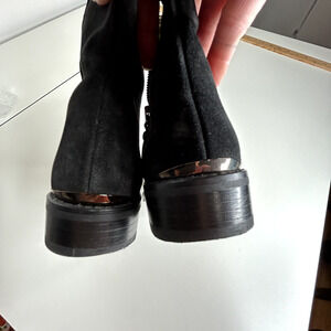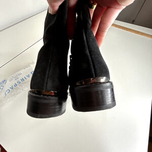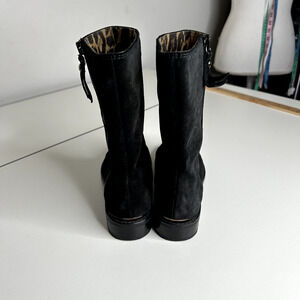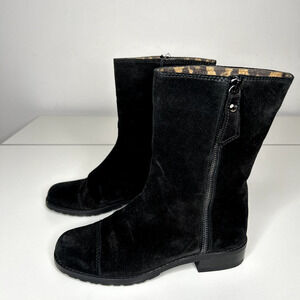 Stuart Weitzman Black Suede Mid-Calf Boots Cheetah Print Round Toe Booties 4
