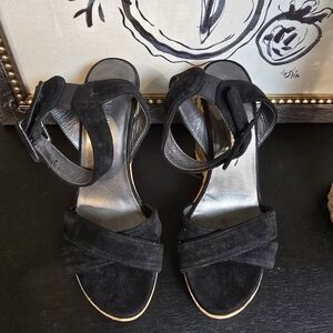 Stuart Weitzman Black Suede Platform Cork Wedge Sandals Size 6