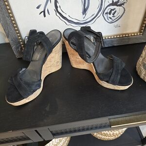 Stuart Weitzman Black Suede Platform Cork Wedge Sandals Size 6