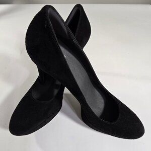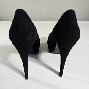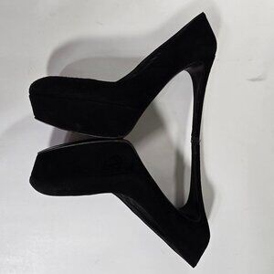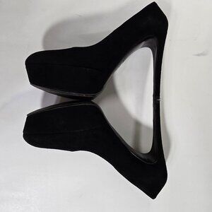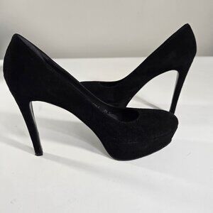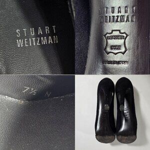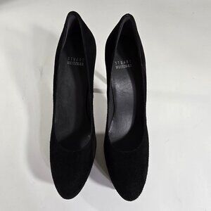 Stuart Weitzman Black Suede Platform Pumps Round Toe 7.5 N 5" Stiletto Heel
