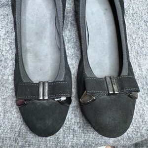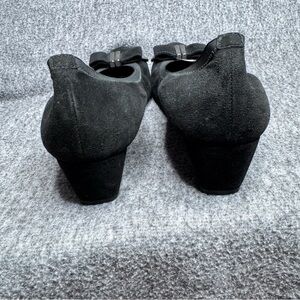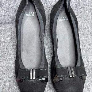 Stuart Weitzman Black Suede Wedges Bow Accent Sz 10