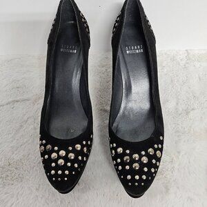 Stuart Weitzman Black Sueded Studded Stiletto Pumps Size 8.5