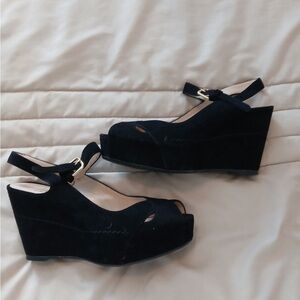 Chic black wedges with adjustable strap. Ideal for stylish outings.