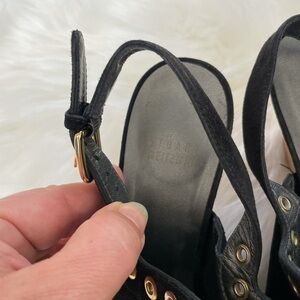 Stuart Weitzman Black Wedges with Tan Cork Heel