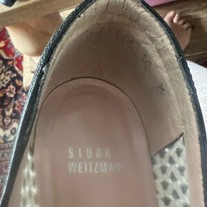 Stuart Weitzman Black and Cream Woven Wedges shoes