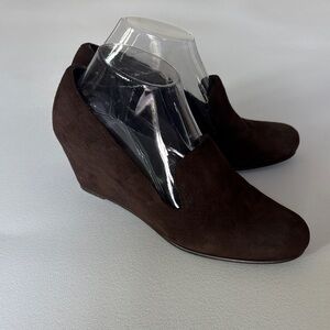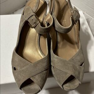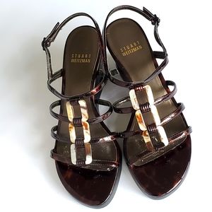 Stuart Weitzman Black and Tan Wedge Sandals