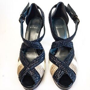 Stuart Weitzman Black Bradford Weave Heels Sz 7.5M