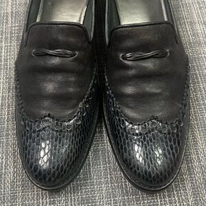 Worn in good condition Stuart Weitzman black leather loafers with a cap toe. Made in Spain