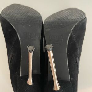 Stuart Weitzman Black Stiletto Ankle Boots with Silver Heel Size 5.5