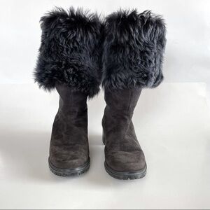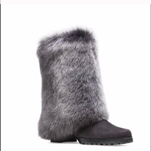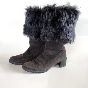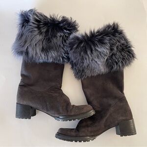 Stuart Weitzman Blizzard Boots Gralon Gray Mink Fur Suede Outdoor Winter Snow 6