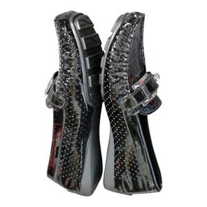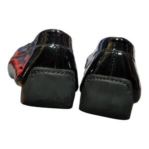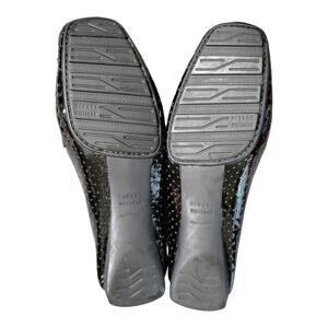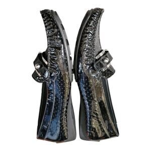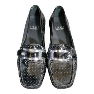 Stuart Weitzman Blk Patent Leather Laser Cut Sqr Toe Embossed Flats Loafers