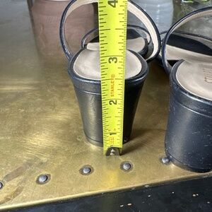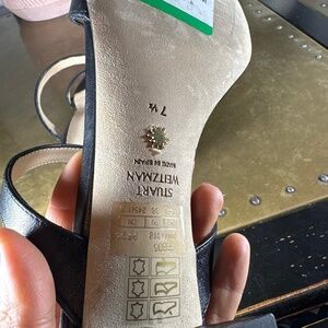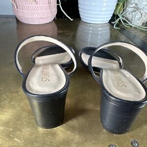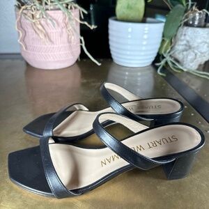 Stuart Weitzman Block Heel Sandal 7.5 Aleena Slide Two Strap Leather Chic Black