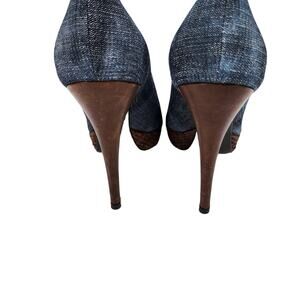 Stuart Weitzman Blue Denim Jean Platform Rattan 4 Inch Heels Size 10