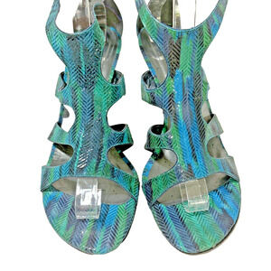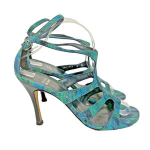 Stuart Weitzman Blue Green Purple High Heel Sandals Size 9 Ankle Strap Buckles