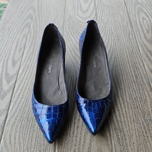 Stuart Weitzman Blue Patent Crocodile Heels - Leather Embossed 9.5M Pumps