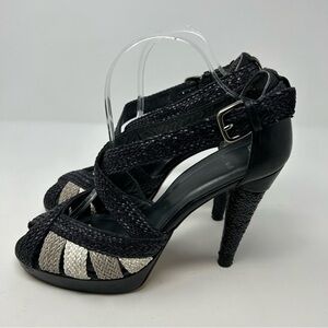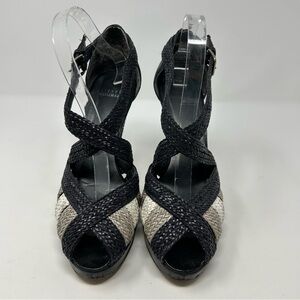 Stuart Weitzman Blue/Black and Nude Beige Woven Braided Platform Sandals Size 10