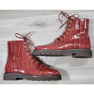 Stuart Weitzman Bootie Women's 8 Cardamom Mila Lift Croc Leather Combat New