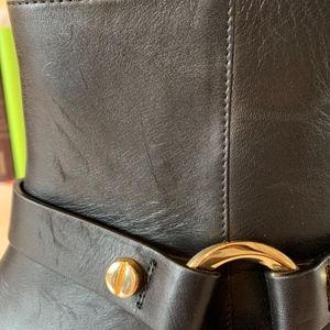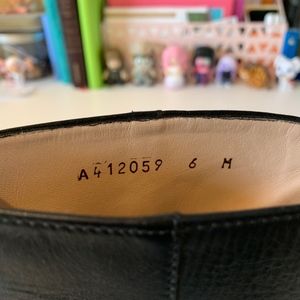 Authentic Stuart Weitzman booties. They are black leather with gold hardware. They show a little bit of wear. I do not have the original box.