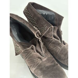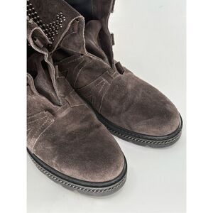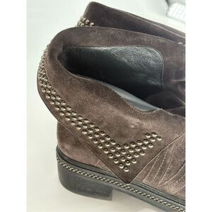 Stuart Weitzman Booties Boots Suede Women Size 8.5 Brown Gray Studded Combat