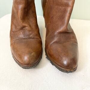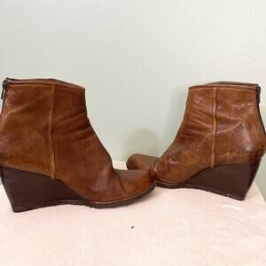Stuart Weitzman Boots Women 9M Brown Leather Wedge Clog Almond Toe Ankle SPAIN